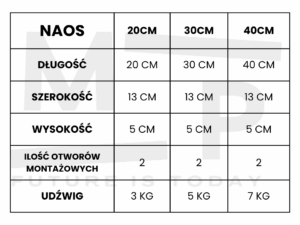 Rozstaw otworów montażowych w półce łazienkowej NAOS 40cm – 33,5 cm