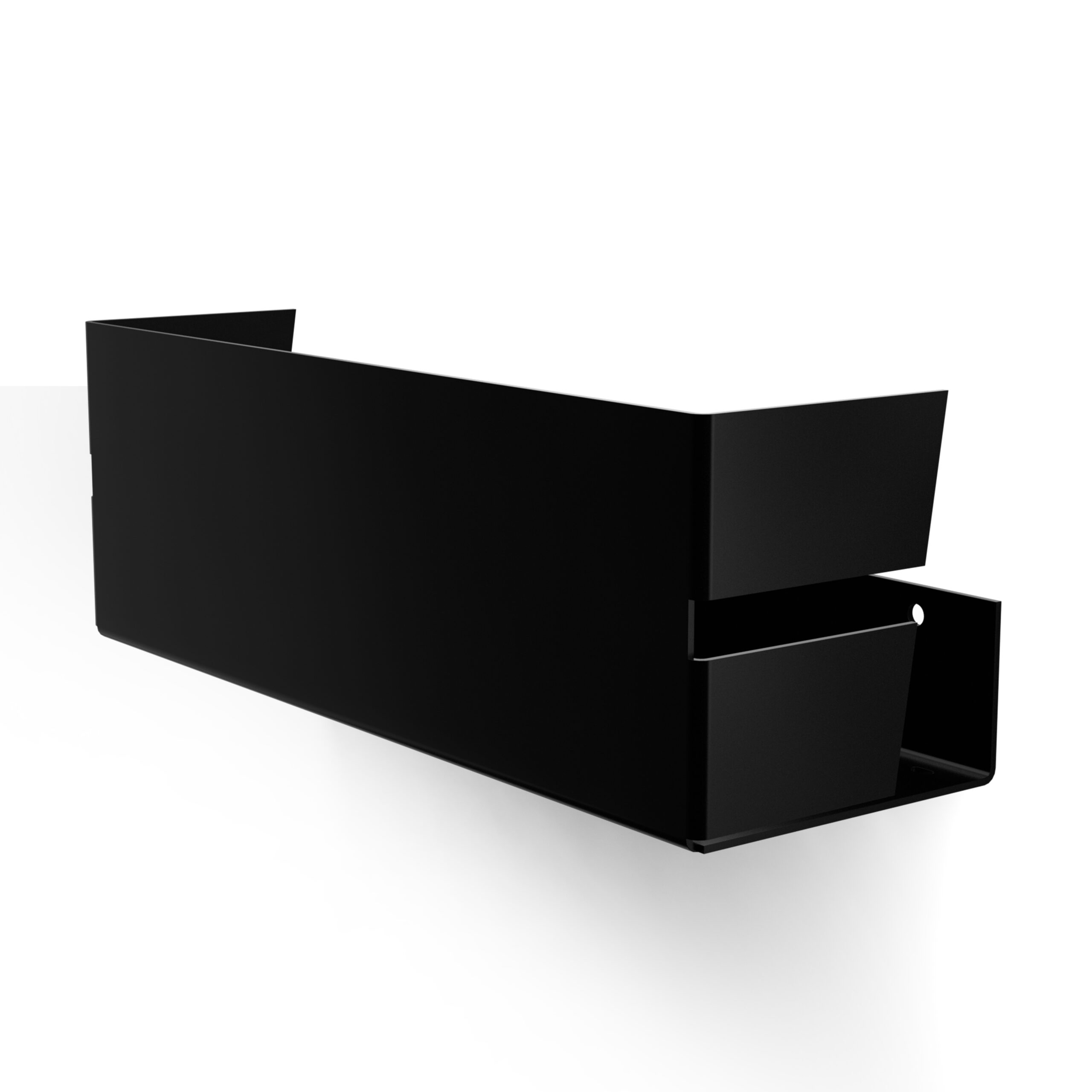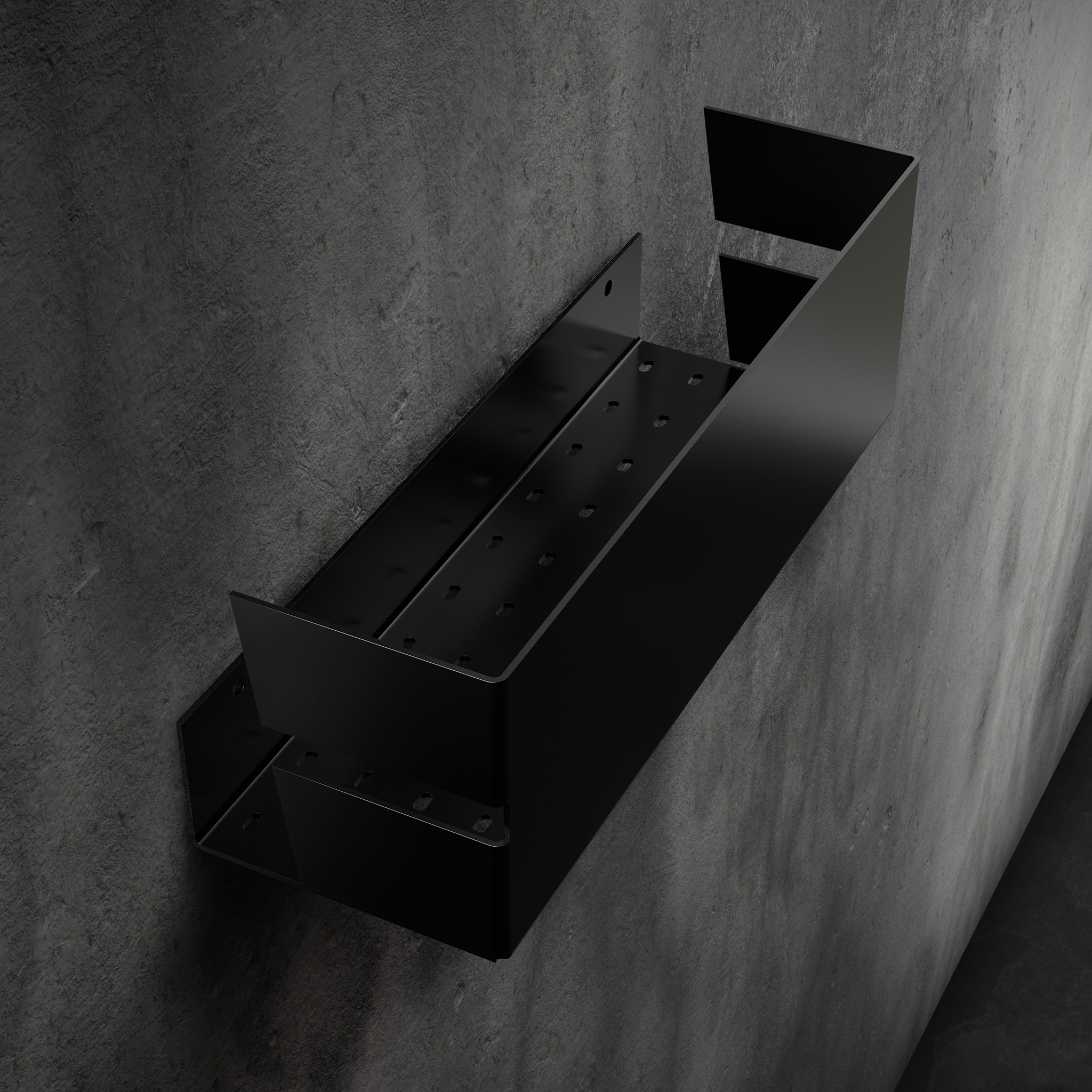 Konstrukcja półki wykonana jest z lekkiego, a zarazem wytrzymałego aluminium, malowanego proszkowo na głęboki matowy kolor. To gwarancja odporności na wilgoć i korozję – dokładnie tak, jak w naszych innych aluminiowych akcesoriach łazienkowych.