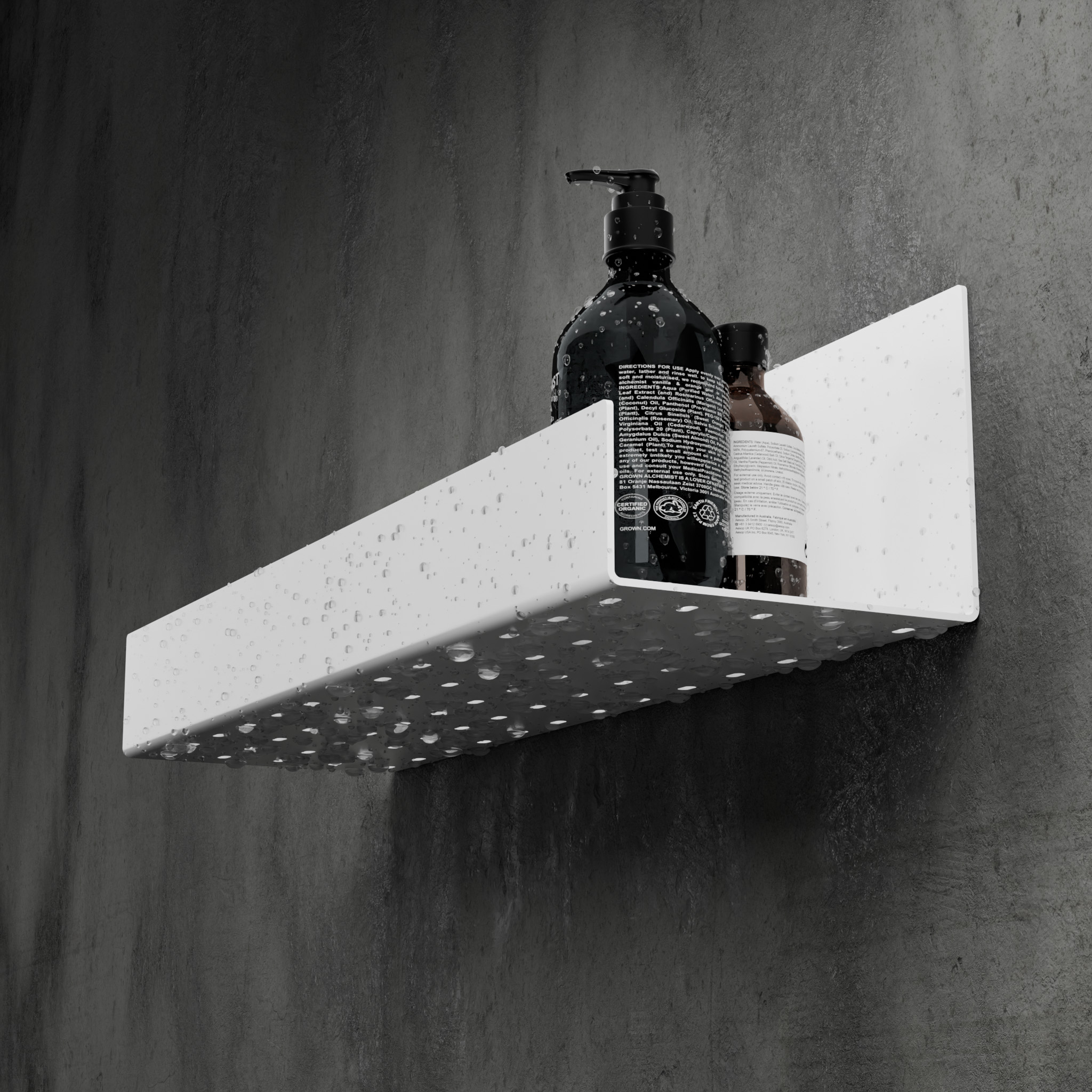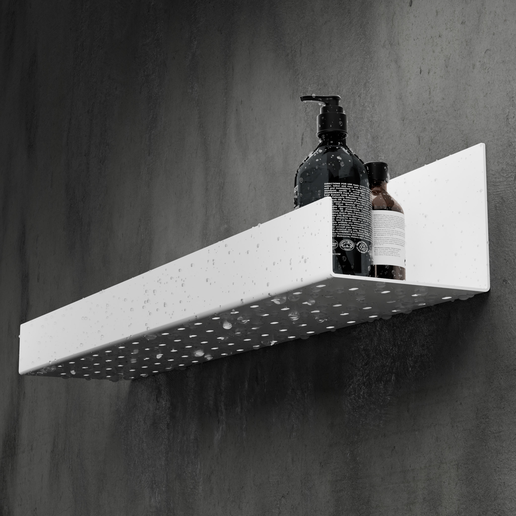 Dzięki systemowi mocowania na taśmę 3M nie musisz wierci otworów w płytkach – instalacja jest szybka, a mocowanie solidne. Perforowane dno umożliwia odpływ wody, zapobiegając gromadzeniu się wilgoci.